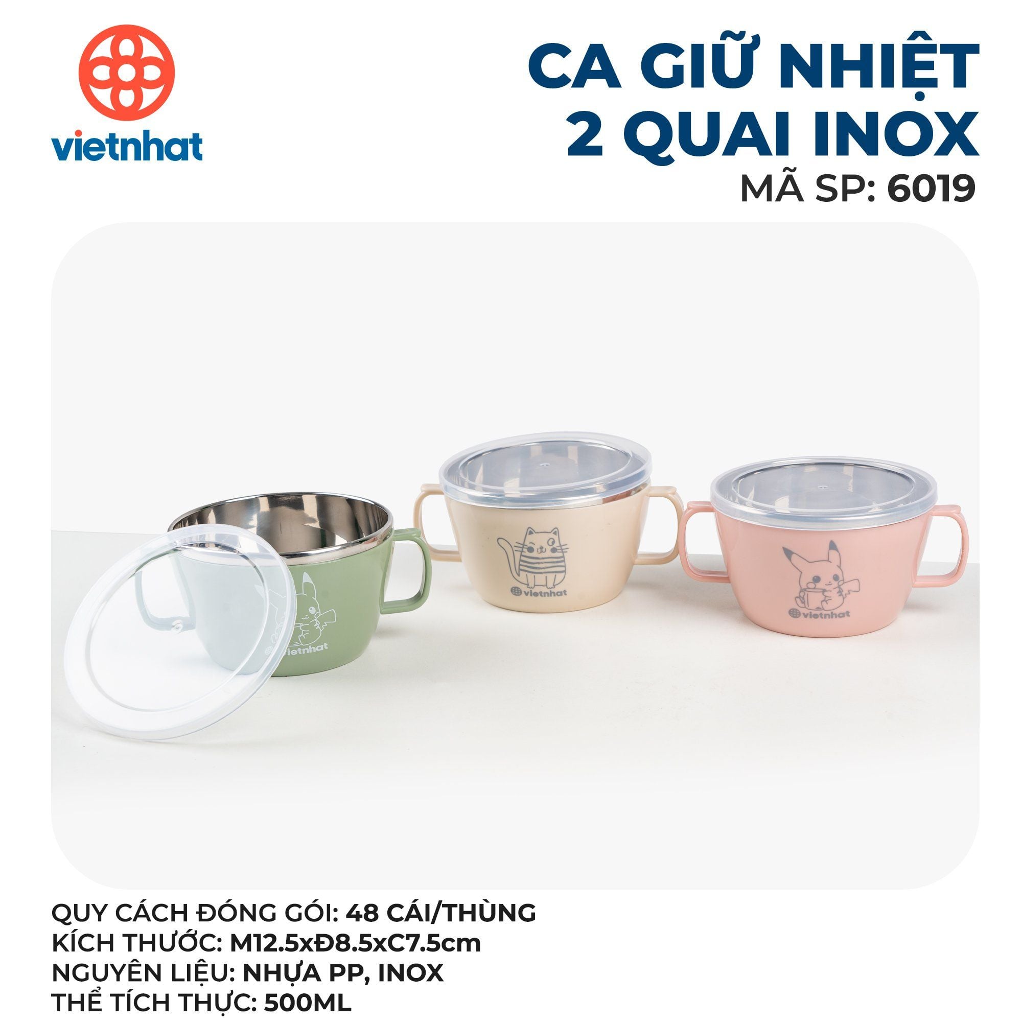 Ca giữ nhiệt 2 quai inox 6019
