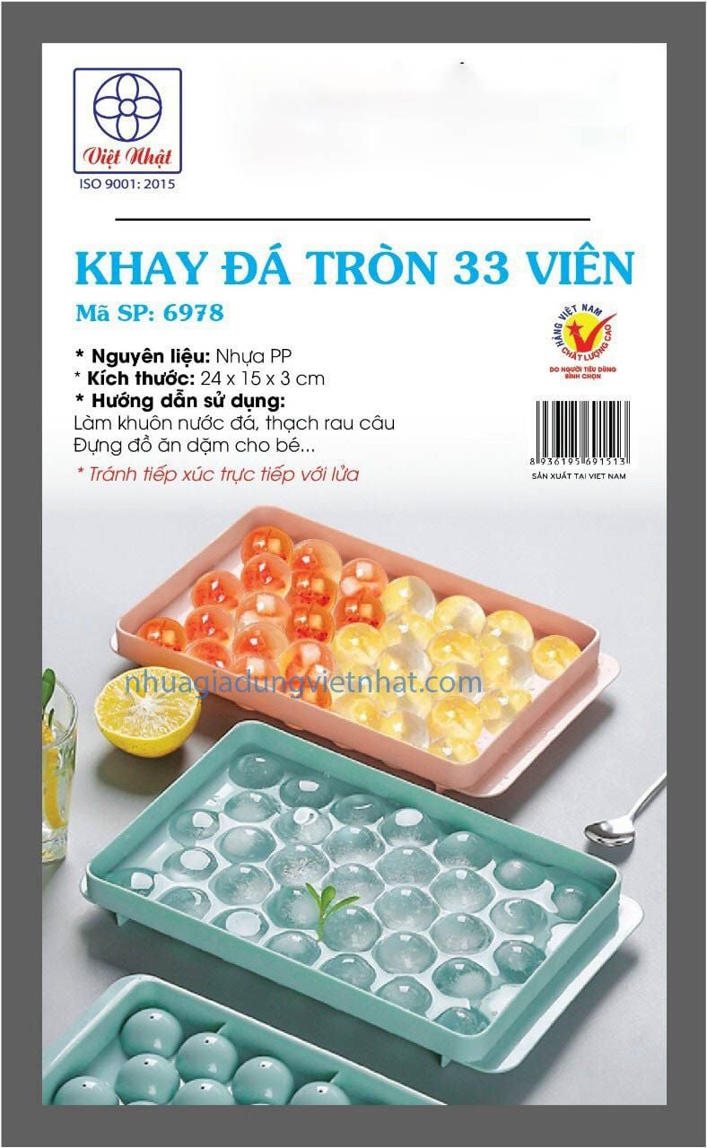 + Khay đá tròn 33 viên 6978, khay làm đá thông minh tạo ra những viên đá rất đẹp mắt, khay có nắp đậy sạch sẽ